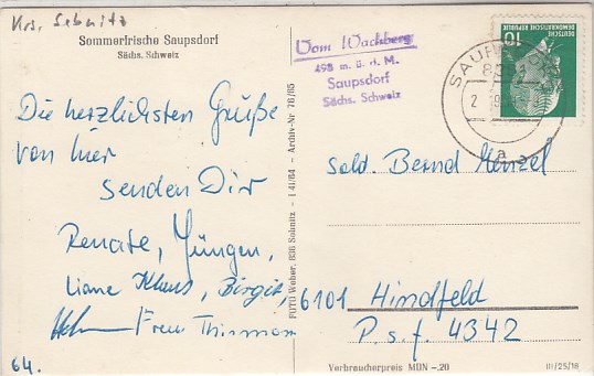 Sebnitz OT Saupsdorf 1965