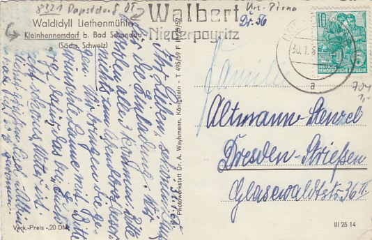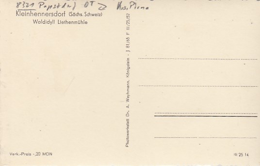 Papstdorf OT Kleinhennersdorf Liethenmühle 1959