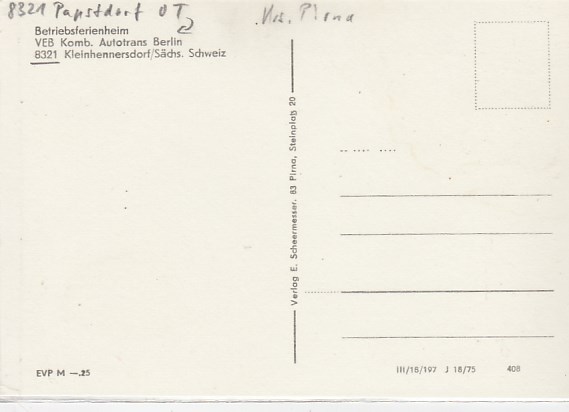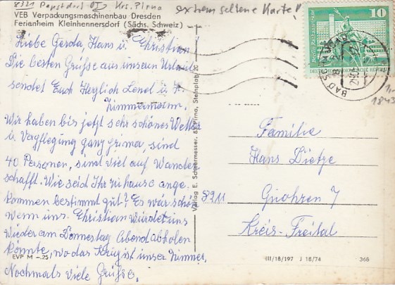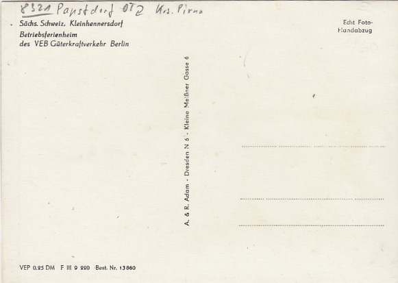 Reinhardtsdorf-Schöna in Sachsen Ferienheim VEB Fahrzeug Pirna 1972