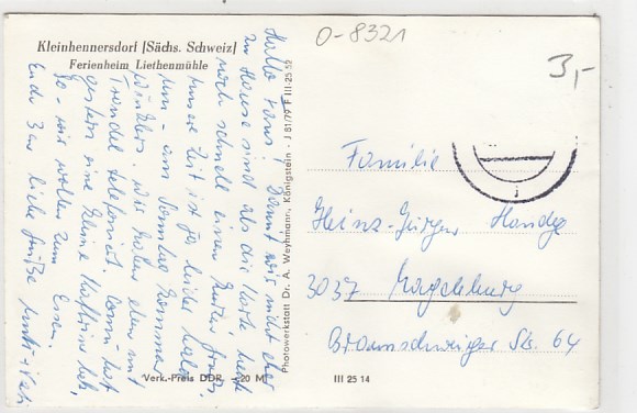 Papstdorf OT Kleinhennersdorf Liethenmühle ca 1985