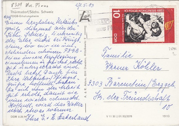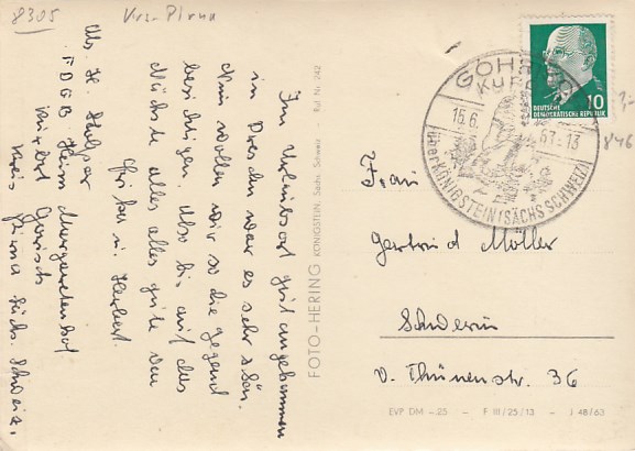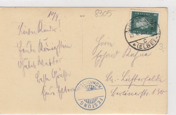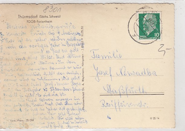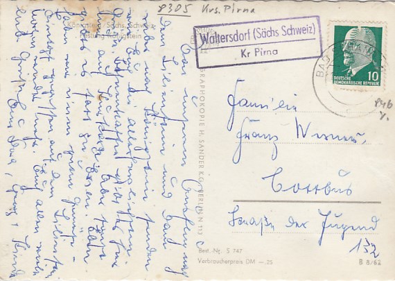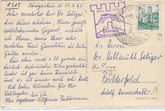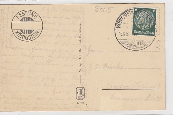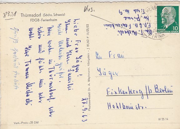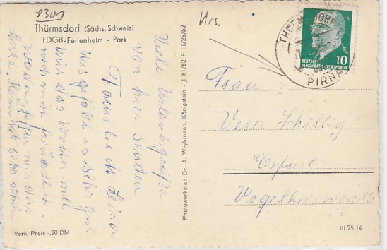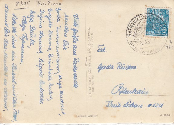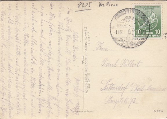 Königstein an der Elbe Landpoststempel Thürmsdorf 1950
