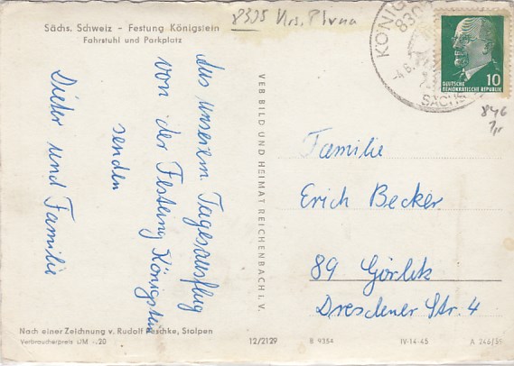 Königstein an der Elbe Künstlerkarte Rudolf Peschke 1958