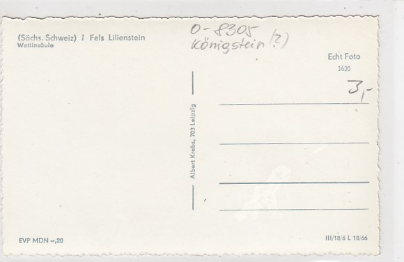 Wettinsäule Königstein an der Elbe Fels Lileinstein 1966