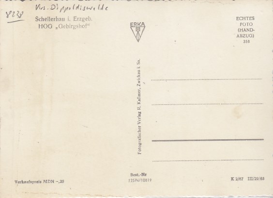 Schellerhau im Erzgebirge Ferienheim Kelterei Lockwitzgrund 1966
