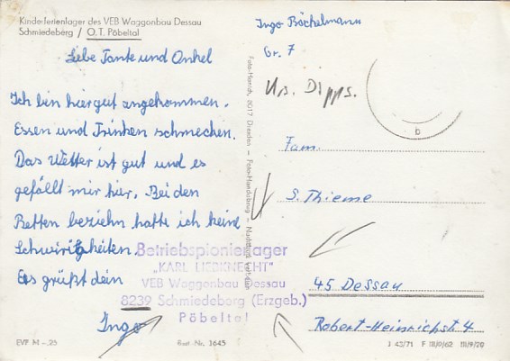 Schellerhau im Erzgebirge Ferienheim VEB Tabakuni 1968
