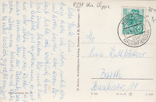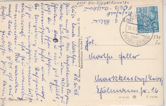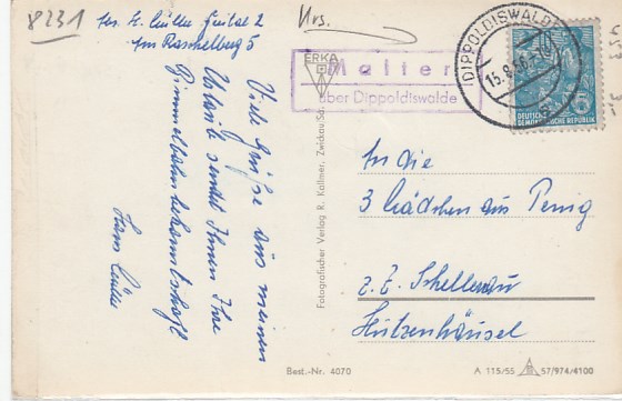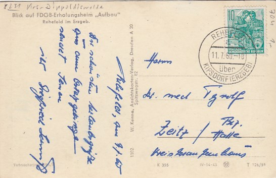 Falkenhain im Erzgebirge mit Landpoststempel 1960