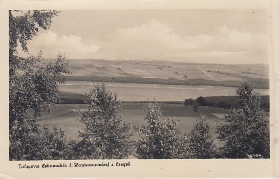 Talsperre Lehnmühle bei Hartmannsdorf-Reichenau im Erzgebirge 1956