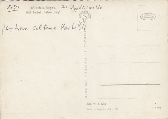 Kurort Bärenfels im Osterzgebirge Felsenburg 1954