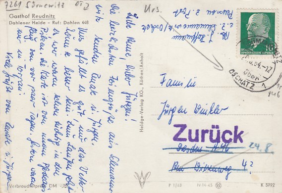 Dahlener Heide Gasthof Reudnitz bei Cavertitz Schmannewitz 1963