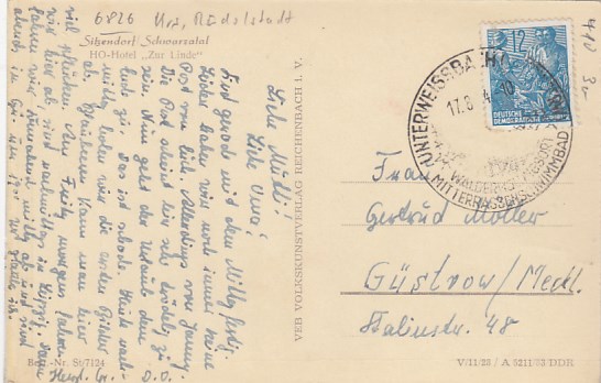 Sitzendorf Schwarzatal in Thüringen Hotel Zur Linde 1950
