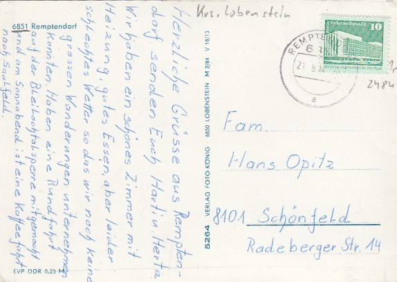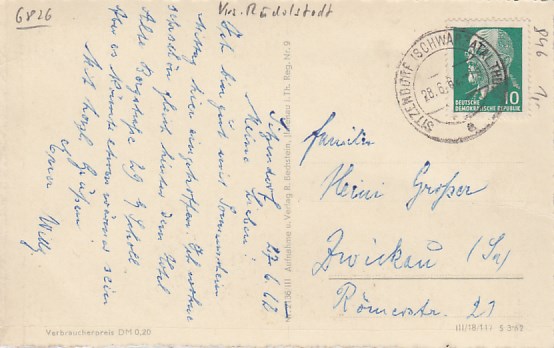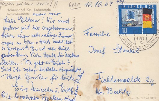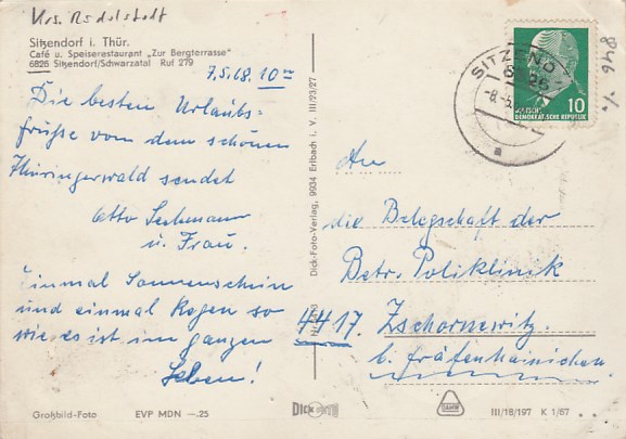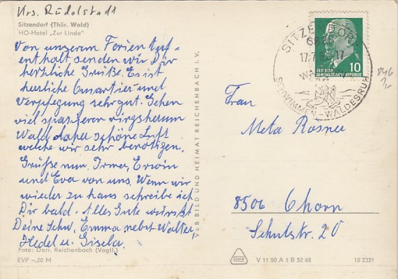 Sitzendorf Schwarzatal in Thüringen Pension Henkel 1956