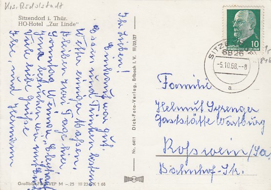 Sitzendorf Schwarzatal in Thüringen Hotel Zur Linde 1968