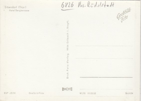 Sitzendorf Schwarzatal in Thüringen Restaurant Zur Bergterrasse 1967