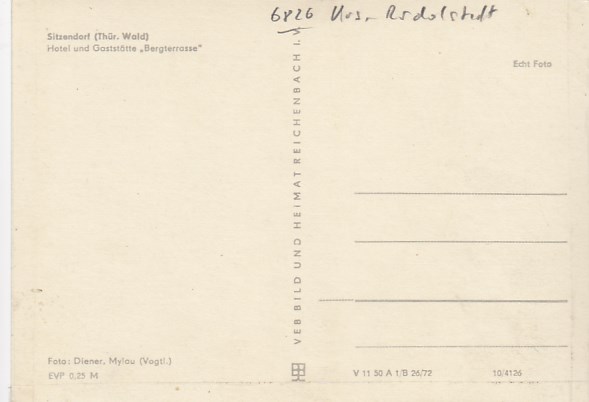 Sitzendorf Schwarzatal in Thüringen Restaurant Zur Bergterrasse 1972