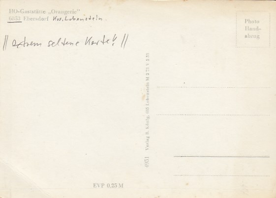 Ebersdorf in Thüringen Gaststätte Orangerie 1971
