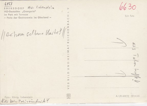 Ebersdorf in Thüringen Gaststätte Orangerie 1972