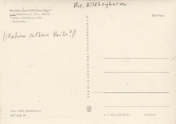 Schönbrunn Thüringen Gasthof Zum Fröhlichen Jäger 1971