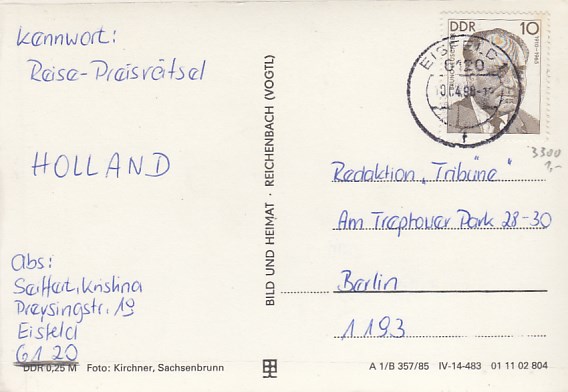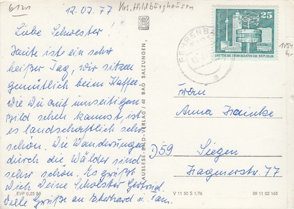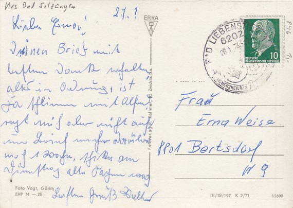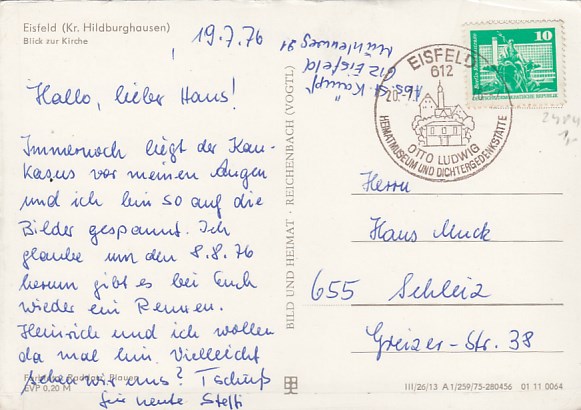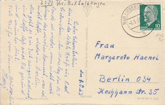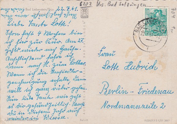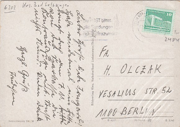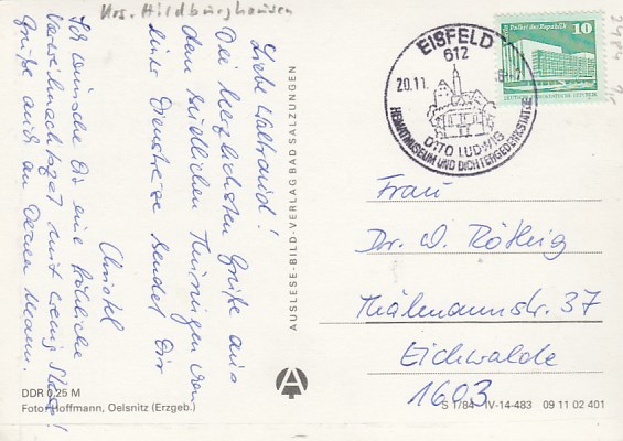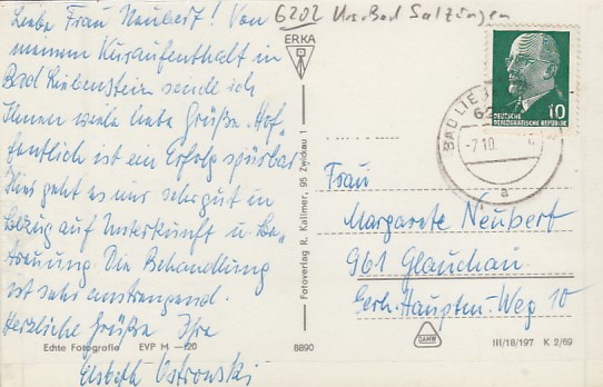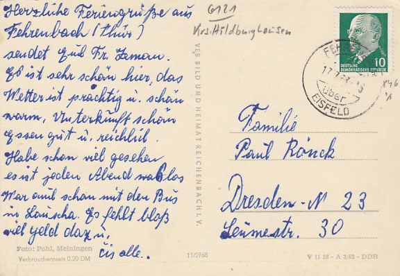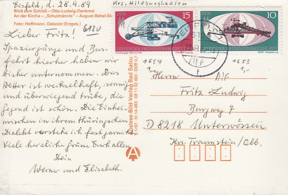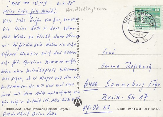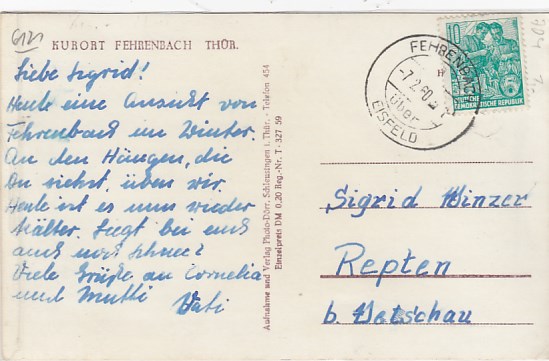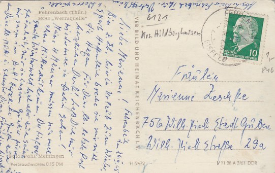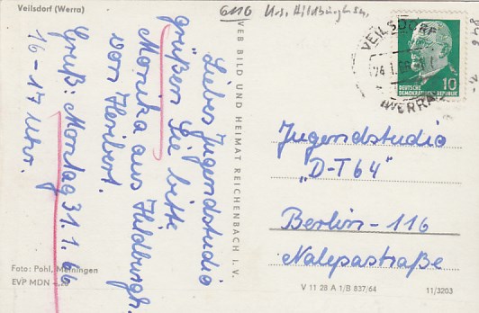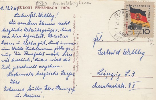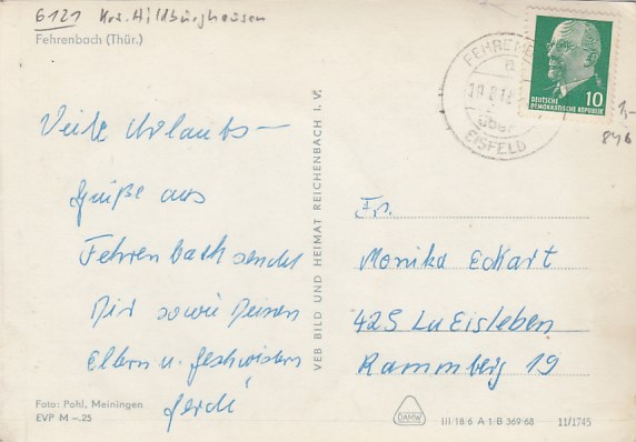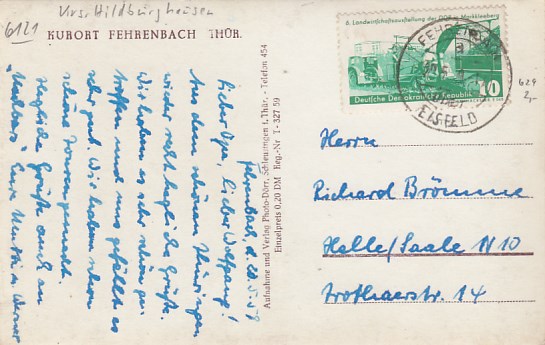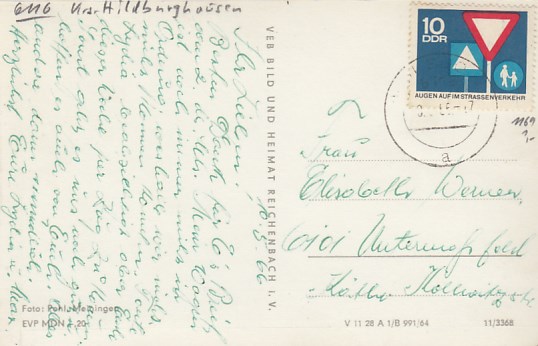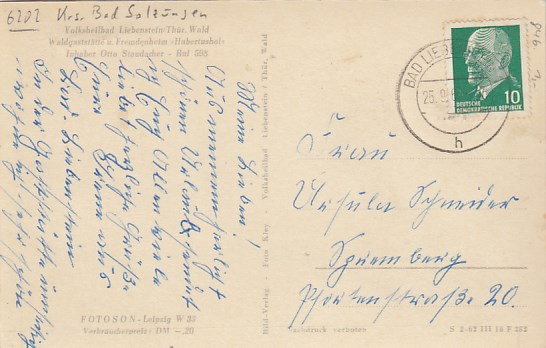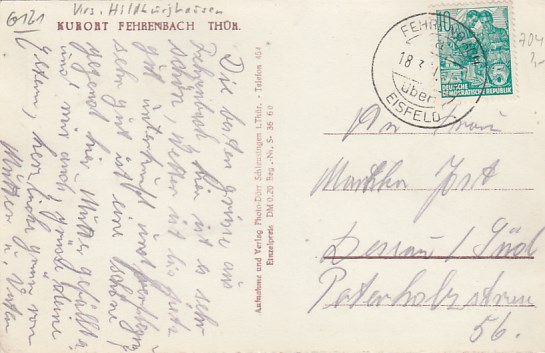 Schönbrunn Thüringen Landpoststempel Luftpost 1963
