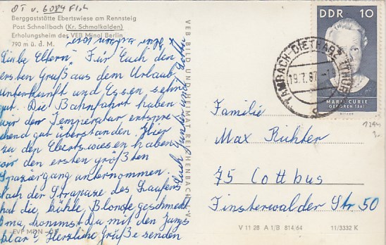 Berggaststätte Ebertswiese am Rennsteig bei Schnellbach ,Floh-Seligenthal in Thüringen 1964