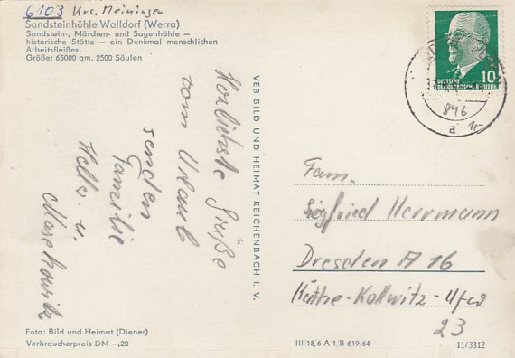 Walldorf in Thüringen Sandsteinhöhle Bergbau 1963