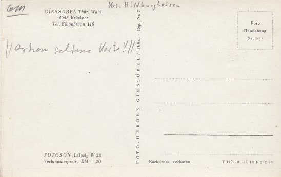 Giessübel Gießübel in Thüringen Cafe Brückner 1958