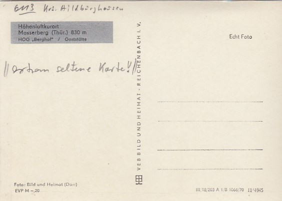 Masserberg in Thüringen Gaststätte Berghof 1970