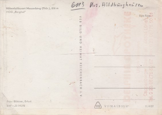Masserberg in Thüringen Gaststätte Berghof 1967