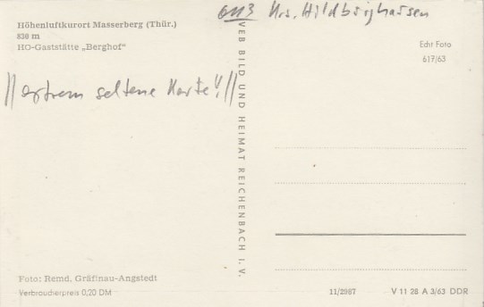 Masserberg in Thüringen Gaststätte Berghof 1963