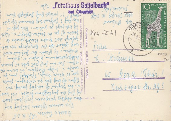Oberhof in Thüringen Gaststätte Forsthaus Sattelbach 1963