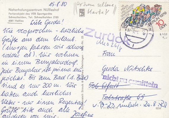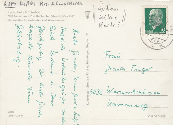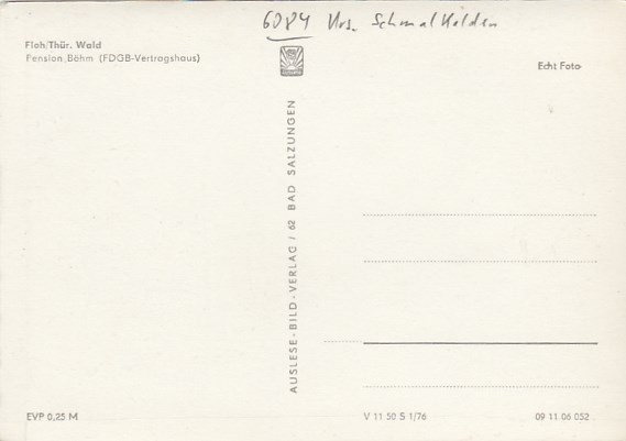 Oberhof in Thüringen Ferienheim Artuhr Becker 1955
