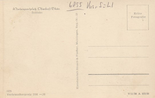 Oberhof in Thüringen Rennschlittenbahn Rodelbahn Bobbahn 1956
