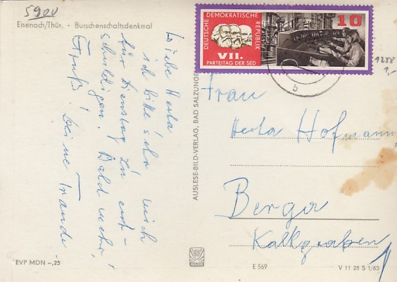 Eisenach in Thüringen Burschenschafts Denkmal 1965