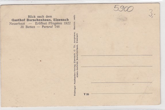 Eisenach in Thüringen Werbung Gasthof Burschenhaus ca 1920