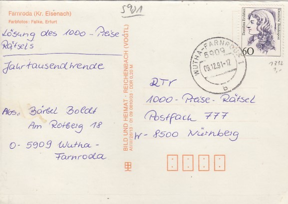 Eisenach in Thüringen Wartburg Sonderstempel und Briefmarke 1953