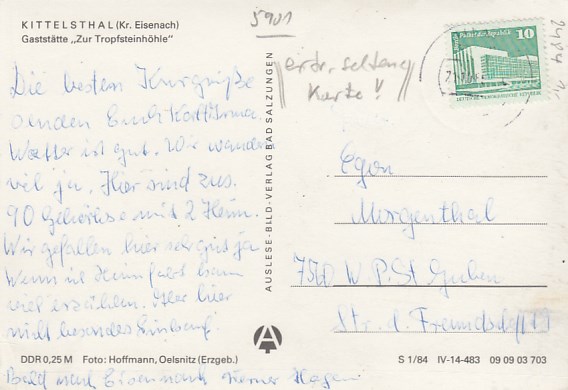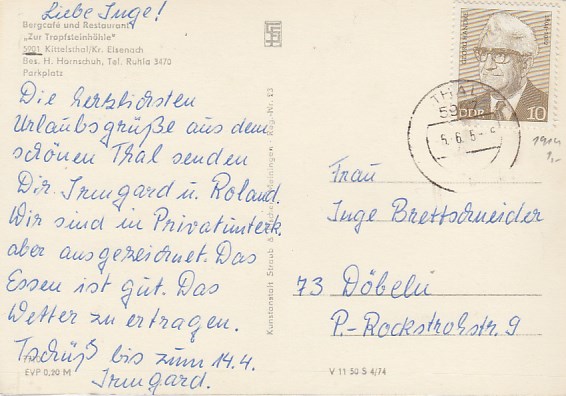Bad Thal in Thüringen Tropfsteinhöhle Foto Karte ca 1965
