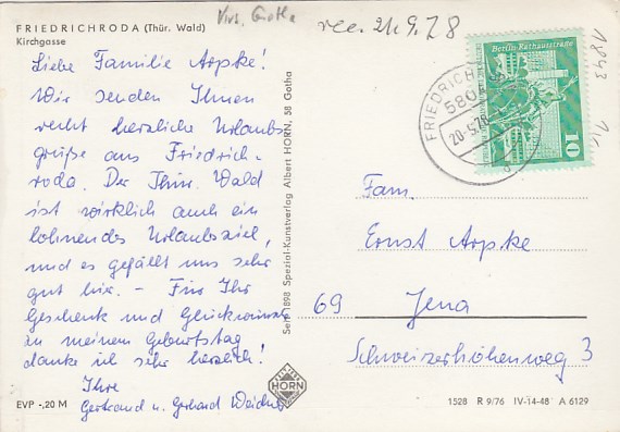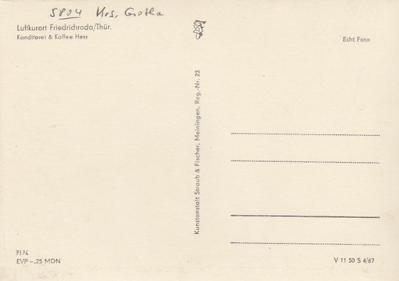 Friedrichroda in Thüringen Kaffee Hess 1967