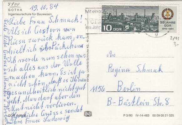 Gotha in Thüringen Ingenieurschule für Bauwesen Postamt 1980
