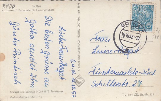 Gotha in Thüringen Fachschule für Finanzwirtschaft 1959