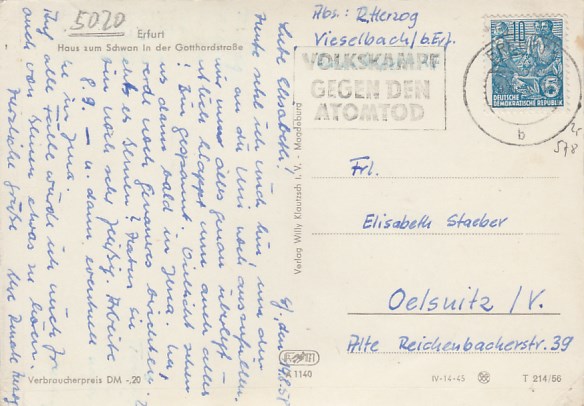 Erfurt Thüringen Gasthaus zum goldenen Schwan1961