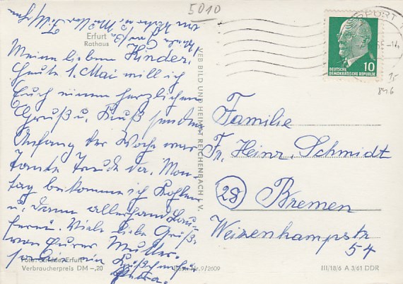 Erfurt Thüringen Krämerbrücke Deligiertenpost 1972