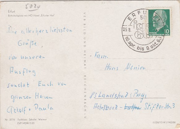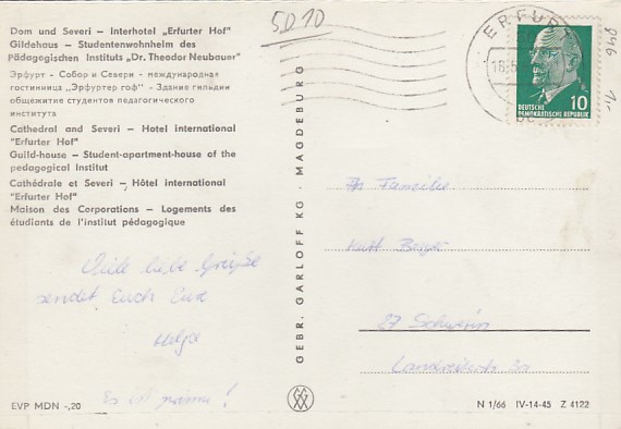 Erfurt Thüringen Hotel Erfurter Hof 1966