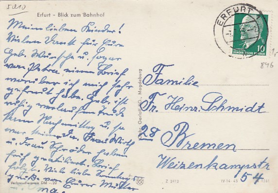 Erfurt Thüringen Blick zum Bahnhof 1961