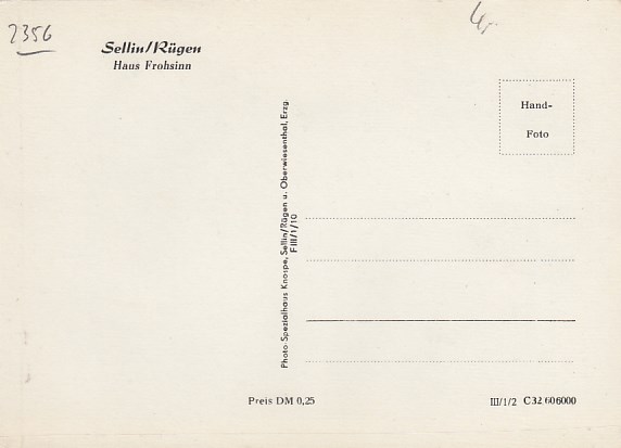 Ostseebad Sellin auf Rügen Haus Frohsinn 1960