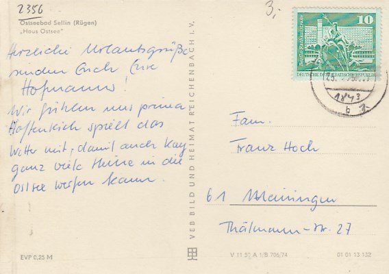 Ostseebad Sellin auf Rügen FDGB-Heim Ferienglück 1973