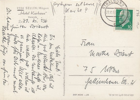 Ostseebad Sellin auf Rügen Kurhaus Frieden 1967