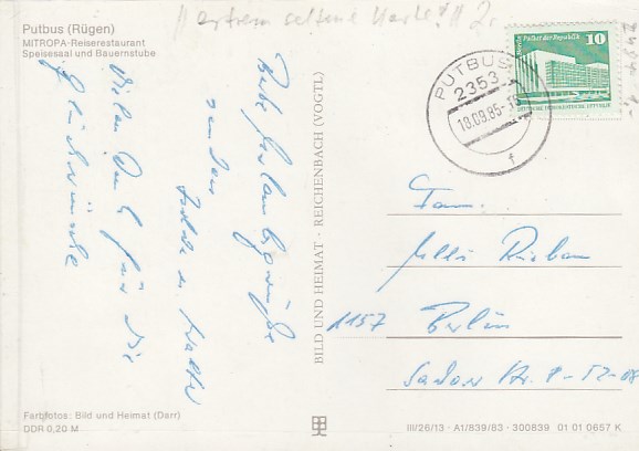 Putbus auf Rügen Gaststätte Jägerhütte 1979