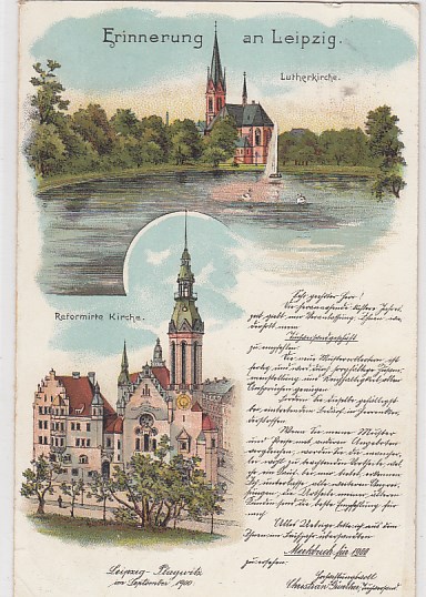 Leipzig Lutherkirche und Reformirte Kirche Litho 1900