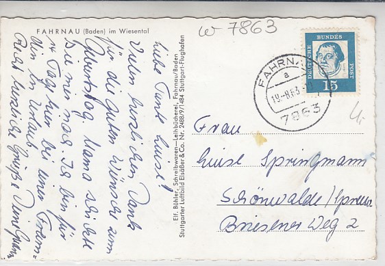 Fahrnau im Wiesenthal Schwarzwald 1963