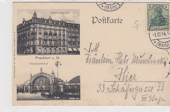 Frankfurt am Main Russischer Hof und Bahnhof 1914