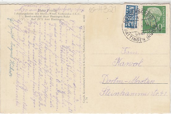 Haus Friede Bredenscheid bei Hattingen an der Ruhr 1958